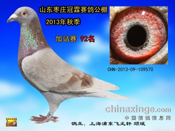2013年秋季山东枣庄公棚获奖鸽,本人交5羽缴费5羽入围4羽,预赛51名,决赛209,名359名,加强赛92名