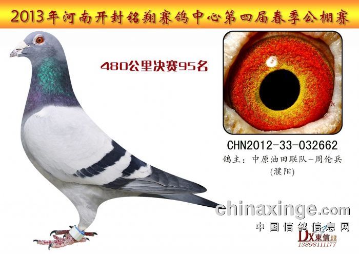 吉翔662在河南开封銘翔国际公棚300公里预赛164名,500公里决赛1380羽荣获95名,吉翔662是本棚最佳配对所出(父亲:苏维原环雄X冠军707,母亲:冠军胡本633X老花母女儿全省冠军219),平辈濮阳市协会、油田协会前十多羽,公棚获32名、41名、88名、378名等名次。