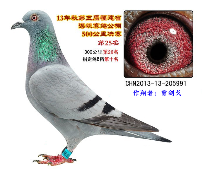 本鸽获得2013年福建海峡赛鸽公棚预赛第26名,决赛第25名。