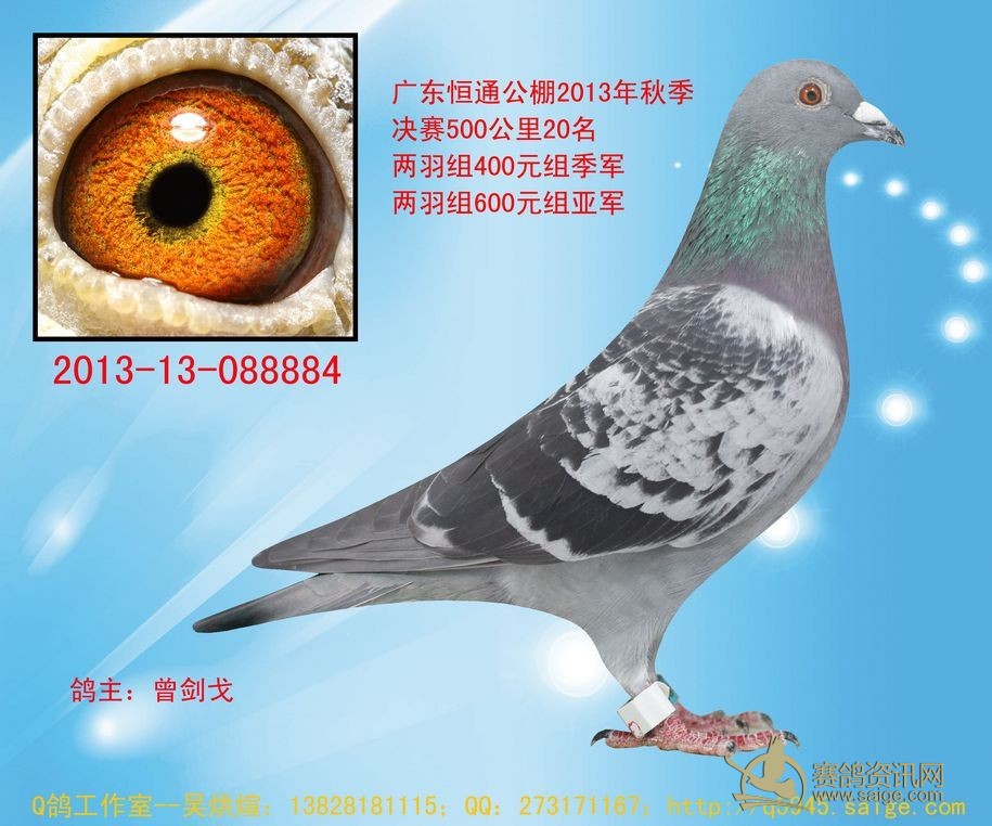 福建东宝鸽舍获得2013年广东潮州恒通公棚秋季500公里决赛第20名。