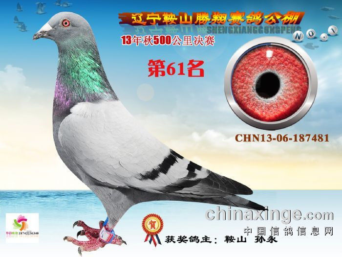 2013年鞍山賸翔公棚500公里决赛61名550公里加强赛再获23名 双关综合冠军 鞍山孙永