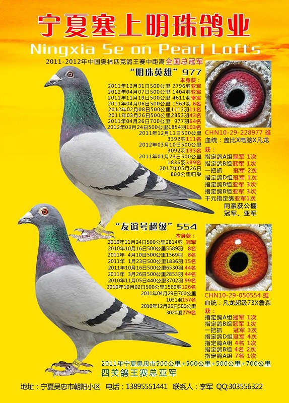 宁夏全区2011-2012年奥林匹克中距离 鸽王冠军