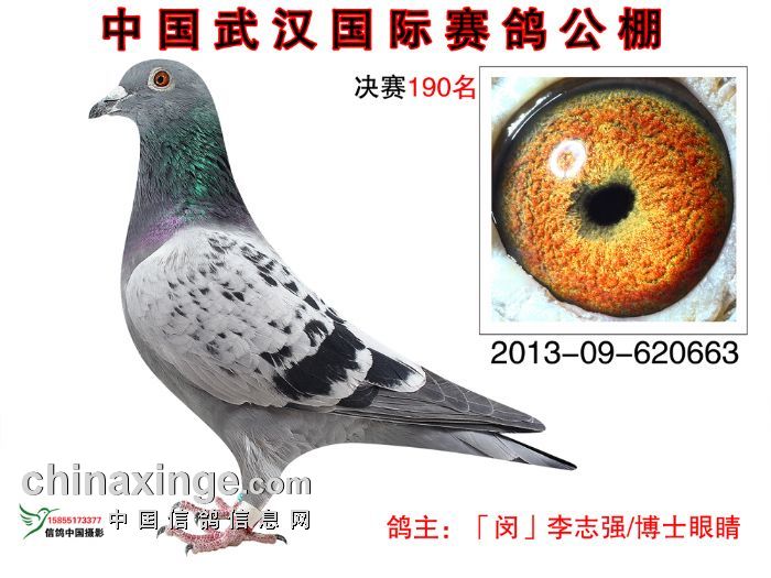 武汉国际公棚今年7000多羽,本人参赛2羽获190名,预赛613名,血系天一霸龙*金母,此配对在本地区获奖多羽。江阴博士眼睛