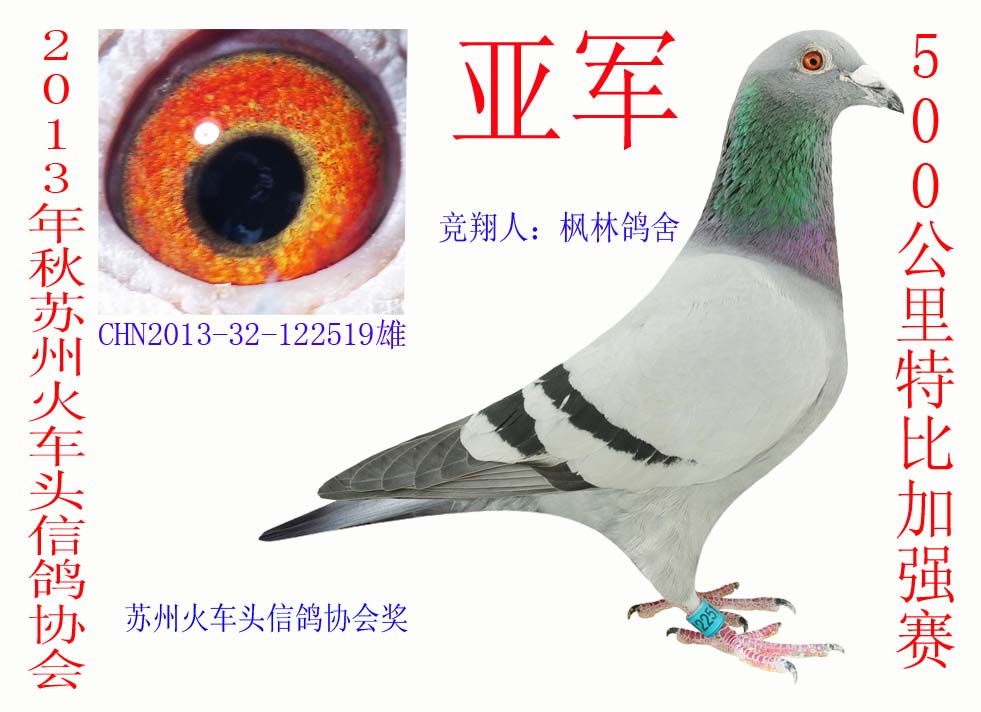 500公里特比加强赛亚军,幼鸽赛亚军,精英赛冠军。