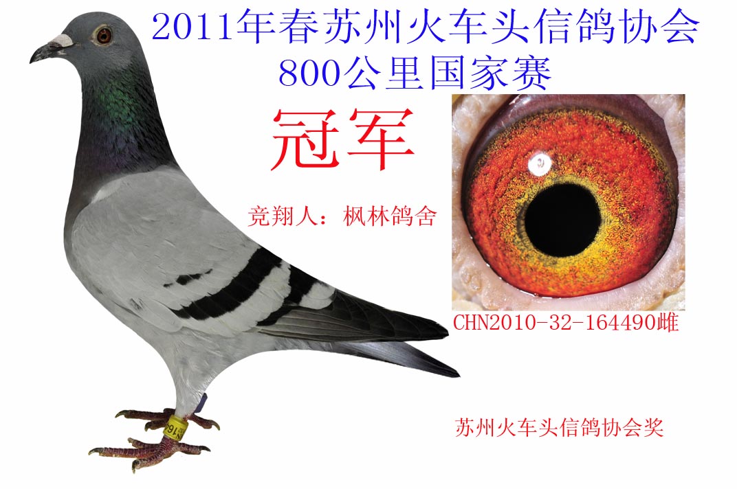 800公里冠军赛冠军,领先亚军45分钟,常熟枫林鸽舍。