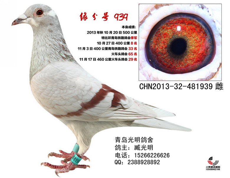 缘分号直孙: 本身成绩: 2013年秋:10月20日500公里特比环青岛铁路鸽会季军 10月27日400公里8名 11月3日400公里青岛铁路鸽会33名火车头鸽会65名 11月17日460公里火车头鸽会29名