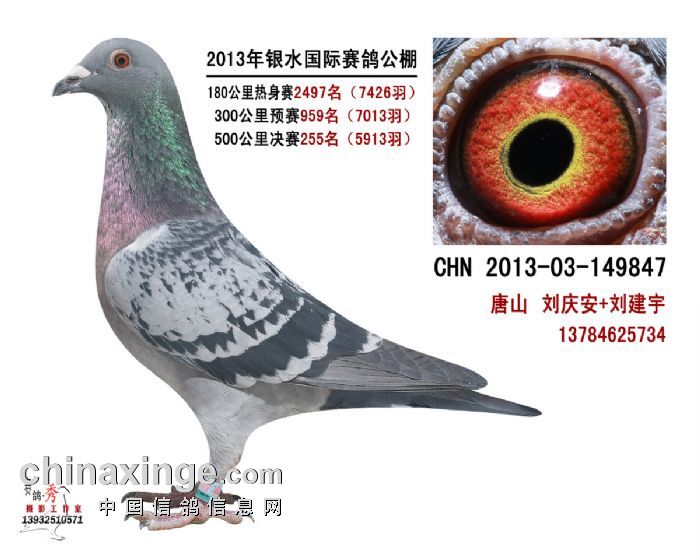2013年我的获奖鸽,真不容易啊羽数较大,进将真是有点难度。255名飞的不容易。