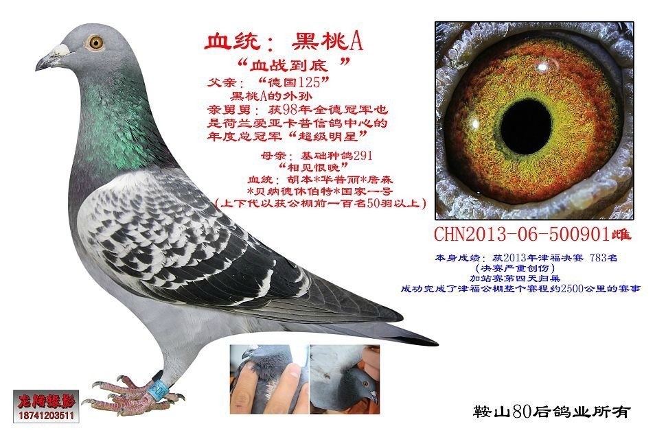 “ 血战到底”的父亲是2003年的德国海尔曼席令原舍种鸽03083-2003-125 超级明星的亲外甥 母亲基础种鸽2921