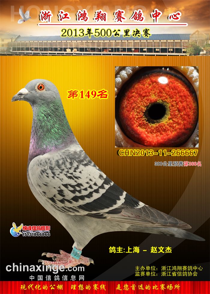 浙江鸿翔赛鸽中心2013年秋季“西湖杯”竞赛决赛149名