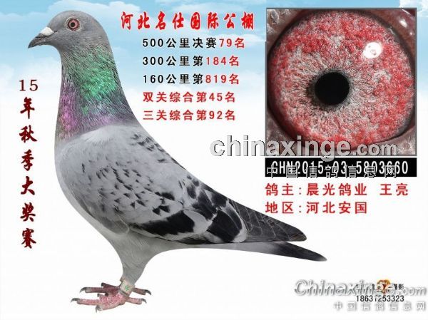 河北名仕公棚决赛79名 这羽鸽子能在2015年这么难飞的赛事里飞出这么好的成绩实属不易、想想今年飞冠军的鸽子那才是真正的精英呀、想飞好的大师们学习。