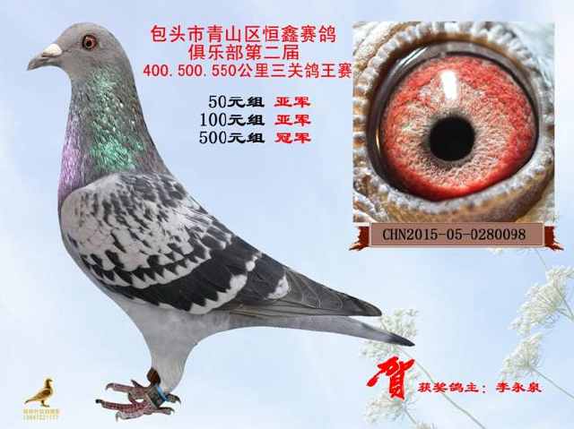 2015内蒙古包头市青山区恒鑫赛鸽俱乐部三关鸽王冠军