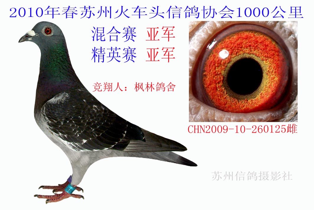 2010年春季苏州火车头鸽会1100亚军,指定鸽亚军,秋季北京连翔常熟季军。