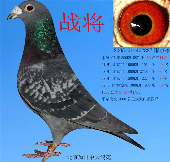 战将本身北京市880公里当日归获60名 北京市1000公里3次入围前60名内 1500公里2天半归巢获得北京市亚军,与秀龙系相配做出2012年北京联翔宣武区第9名 北京如日中天鸽苑所有