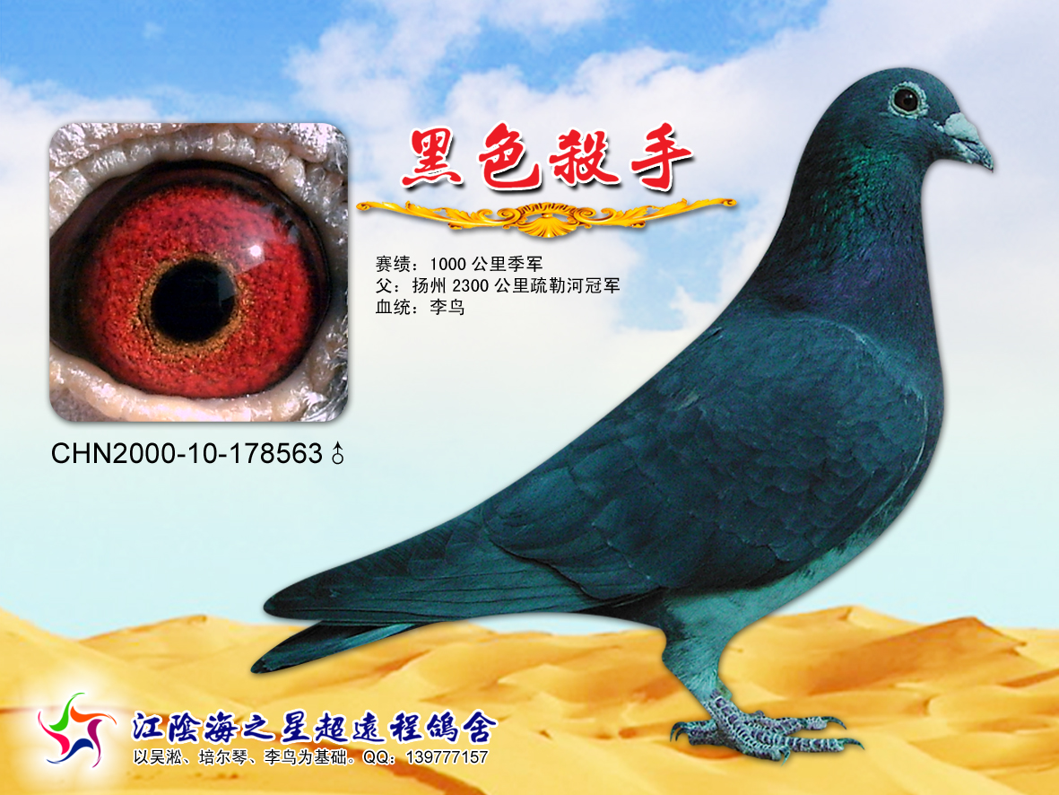 1000公里季军,纯种李鸟,2000年种鸽,每年直接子代年年参赛年年获奖。至今仍在作育种赛鸽