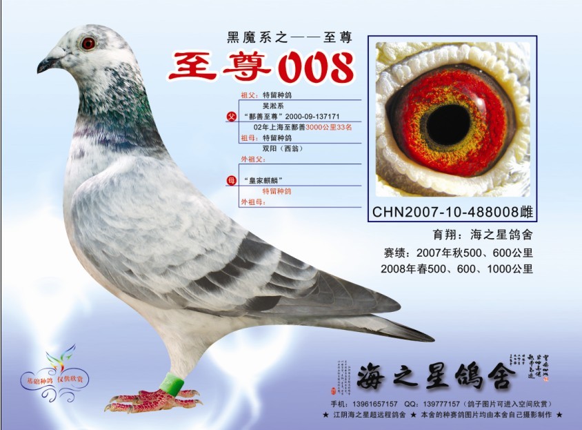 至尊008,3000公里鄯善配其林花(1500公里亚军之母),后代发挥三代。