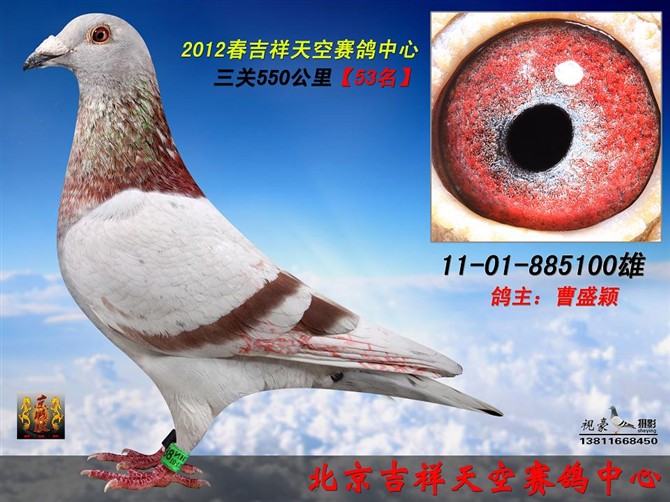 北京吉祥天空俱乐部 350公里548名.500公里469名.55公里53名。血统;德国米西X金鼎长城成绩鸽.此鸽参赛费6300元