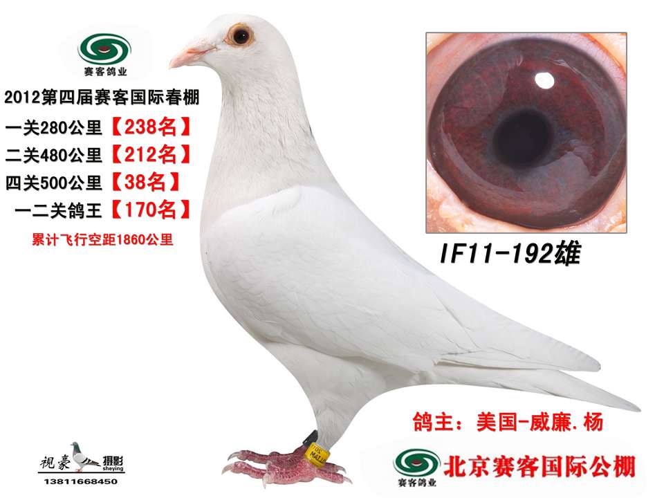 父母均威廉系血统 父母鸽做出的子代在全国各大公棚多次获高位奖,最重要代表奖项。 在2011年深圳翔大国际赛鸽中心获中国国家信鸽公棚赛预决赛总冠军。 威廉.杨先生是京城著名赛鸽家,他做育的赛鸽结构合理,皮毛柔软,手感极佳,建议鸽友关注!!!