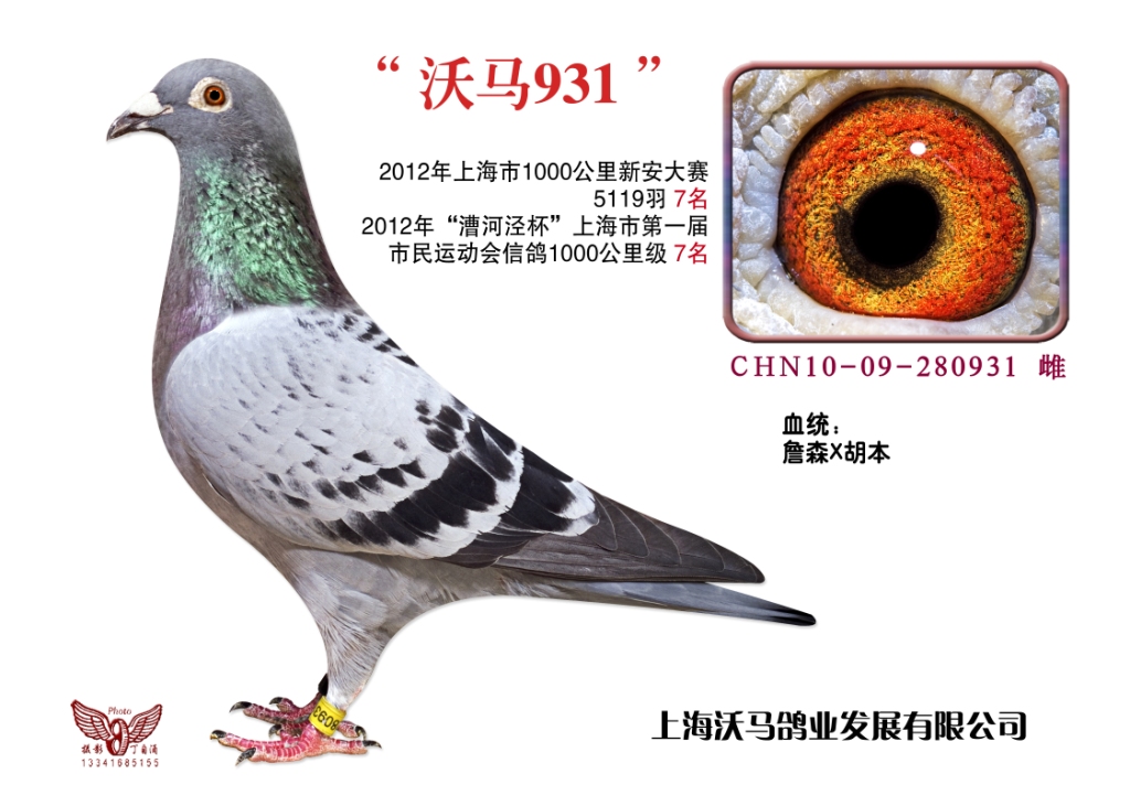 血统:詹森X胡本;空距1000公里;参赛羽数5119羽;7名;2012年5月26日6点2012年5月27日7点10分归巢;分速1004.4959