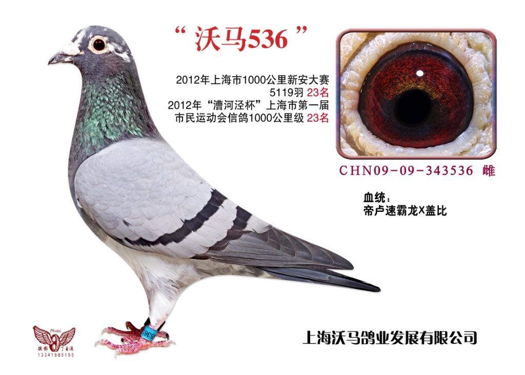 血统;帝卢速霸龙X盖比,空距1000公里,参赛羽数5119羽,23名,2012年5月26日6点放出2012年5月27日7点47分归巢,分速966.9941