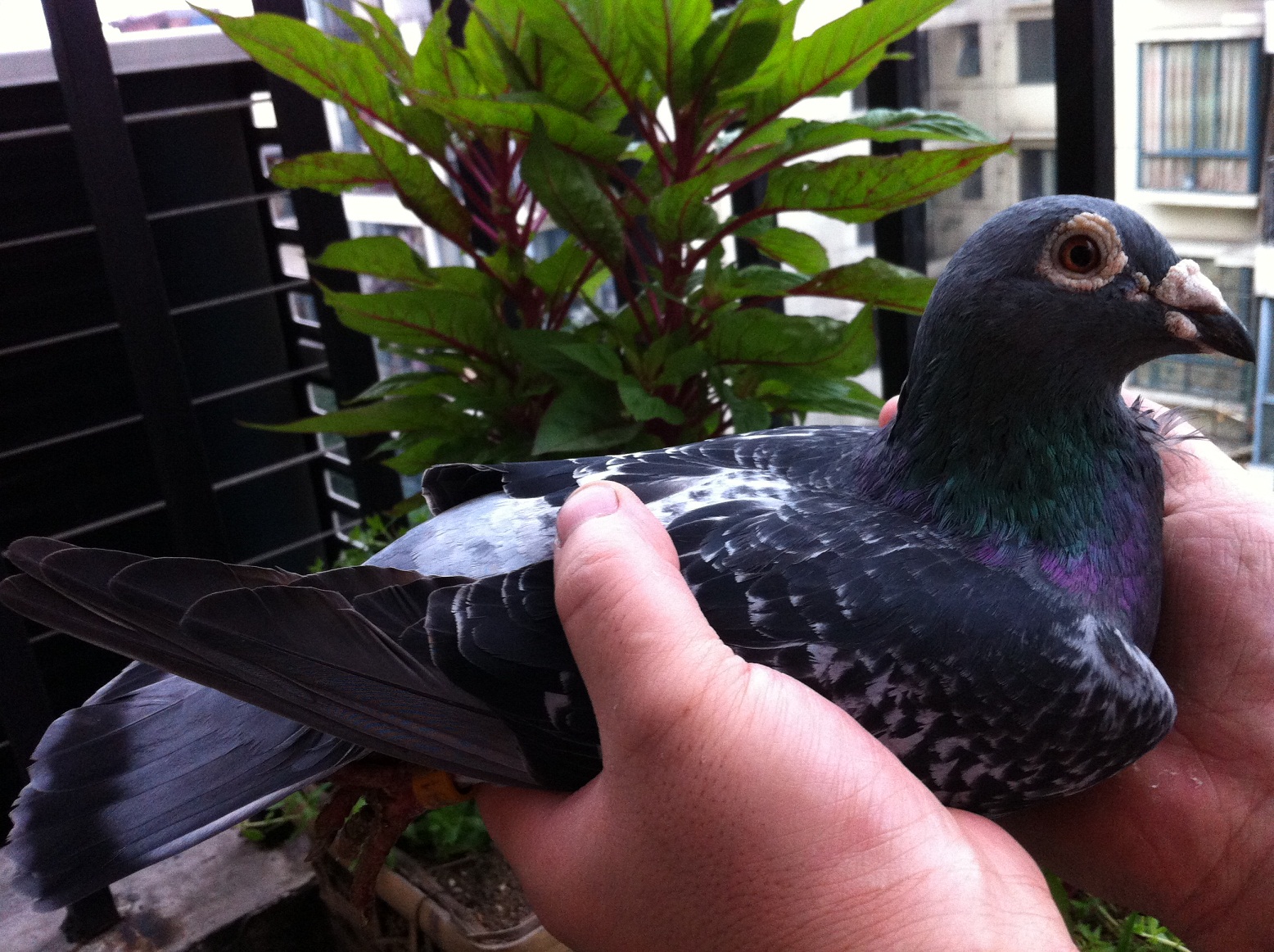 吴淞血统,成都远程1000公里本鸽归巢,翻毛,黄点,雌。