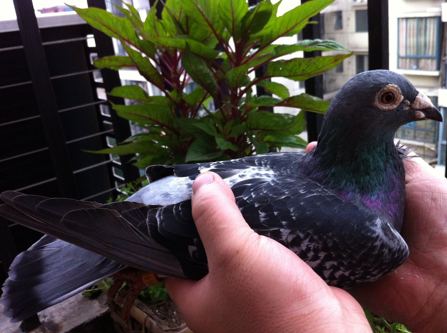 吴淞血统,成都远程1000公里本归巢,翻毛,黄点,雌。