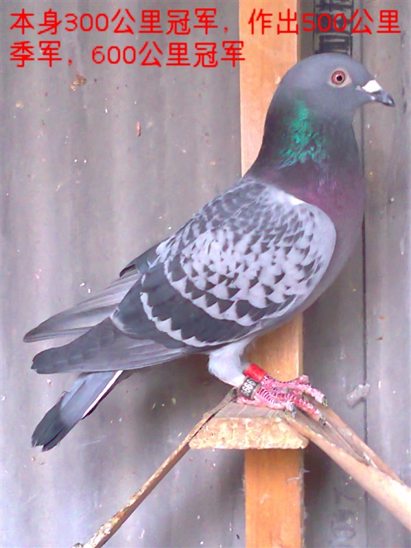 本身:2008年秋300公里【冠军】,两县联翔【亚军】 作出:子代2011年春500公里【季军】指定一把抓冠军,600公里冠军作出:子代2011年秋百汇公棚决赛355名,送两羽作出:子代2012年秋500公里精英赛【亚军】,50元指定冠军,100元指定冠军作出:孙代2012年秋12月4号百汇公棚加战赛!空距580公里集鸽1320羽,获得134名,取198名
