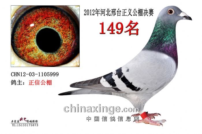 2012年正义公棚决赛1105999获得149名,赢奖金10000元,交在正信公棚名上,本舍2羽参赛.血统.本舍金母之子,佛卡门*盖比,同时也是12年辽宁丹东俱乐部决赛141名的叔叔