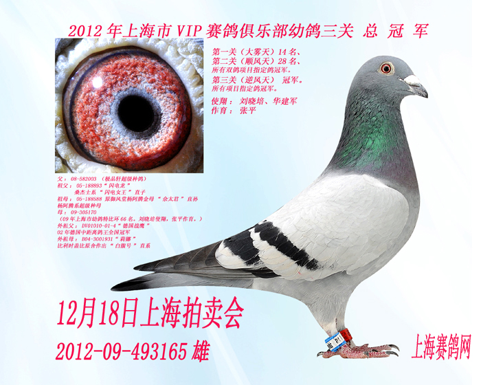 | 中信网友:2012年上海市VIP赛鸽俱乐部幼鸽三关总冠军