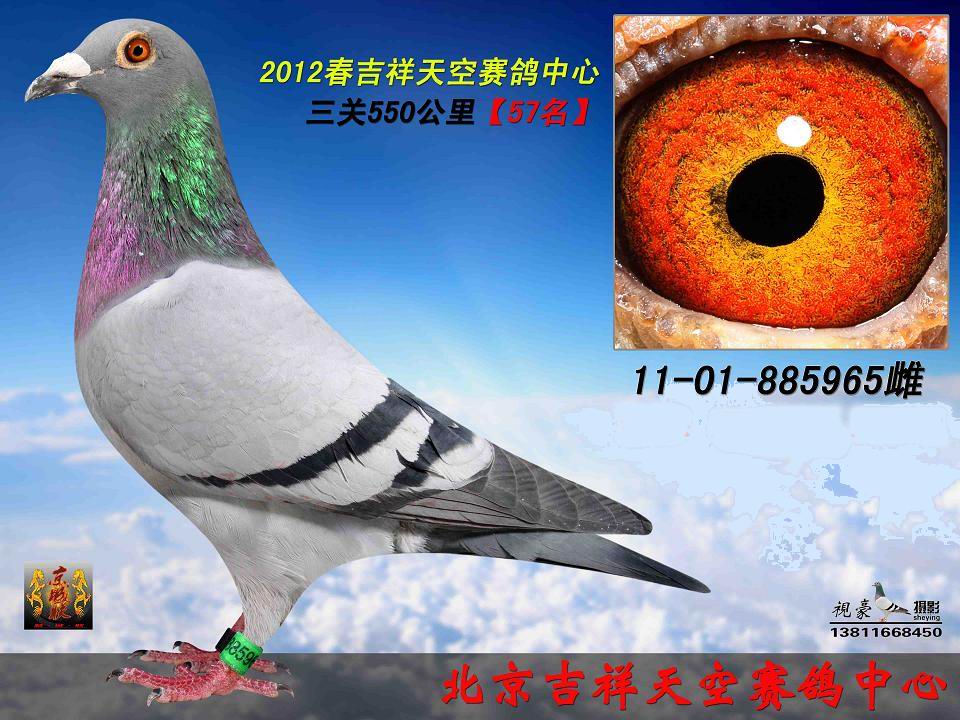 2012年春北京吉祥天空俱乐部。 总羽数1500羽。决赛550公里57名。 2011.01.885877雌.黄.灰 本身成绩 北京名家通城国际王文章做育。由北京名家通城国际王文章选送北京吉祥天空俱乐部。!血统;波治全国冠军直子*公棚冠军母亲.【此鸽特比环6000元】此鸽带奖状和相片.