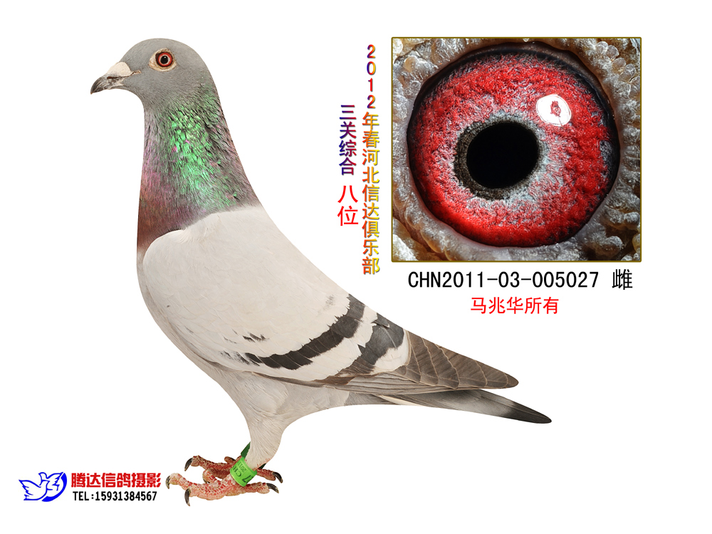 | 天兵鸽舍:本鸽血统戈马利,是本舍一只回血的鸽子。2012年春信达俱乐部三关鸽王8名,50元组指定亚军,100元组指定冠军。我平时叫它027.027的父亲是本舍镇棚种雄,出自江苏名家。母亲就是老种雄的外孙女,08年聚来冠公棚285名.2011年027平辈获公棚42名,金顶长城354名。2012年027同窝雄获国家赛郑州赛区本地亚军,河北省8名,全国16名。养鸽这些年深刻感悟到血统的重要性,既要保存好的血统品系,又要掺入既新鲜又有活力的新血统,才能使好鸽子发展延续... |
