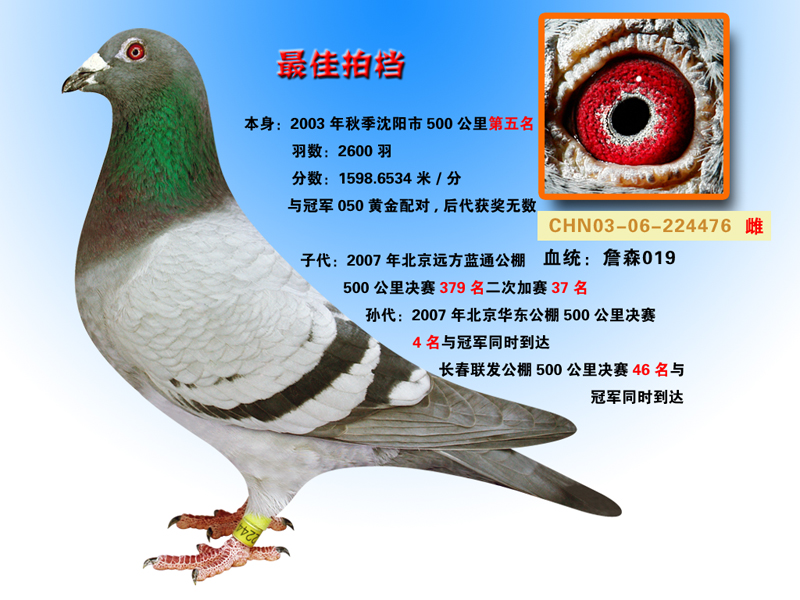 这羽鸽子与超级速霸同父母。沈阳宏源鸽舍作出。
