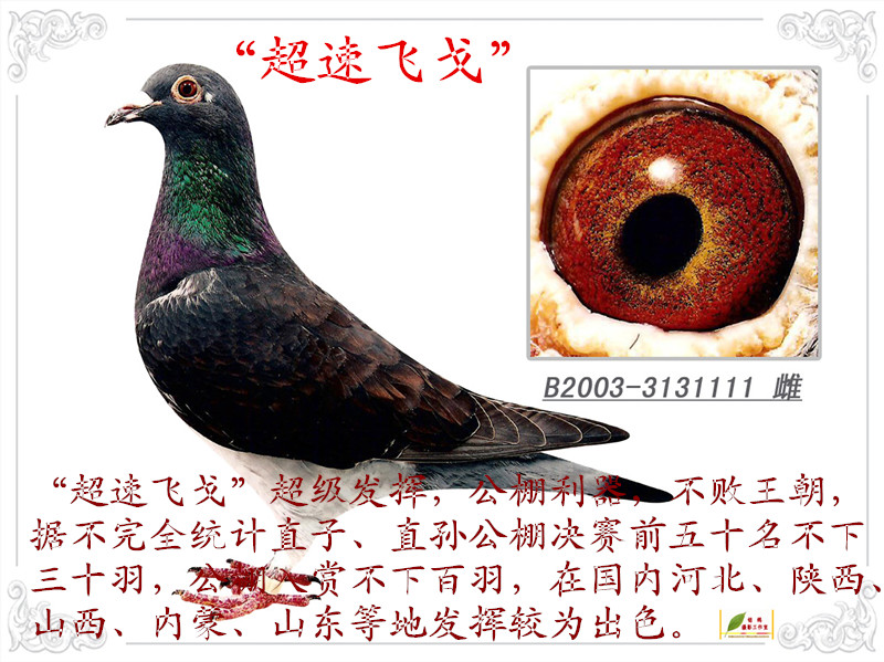 金翎鸽舍超级种雌“超速飞戈”,连续发挥5代,子孙后代地方大奖赛、公棚赛高位入赏无数! 联系方式:18904387***