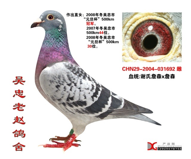 谢氏詹森,10岁,作育后代发挥出色适合任何天气飞行,遗传稳定,进奖率高,是难得超级种雌。