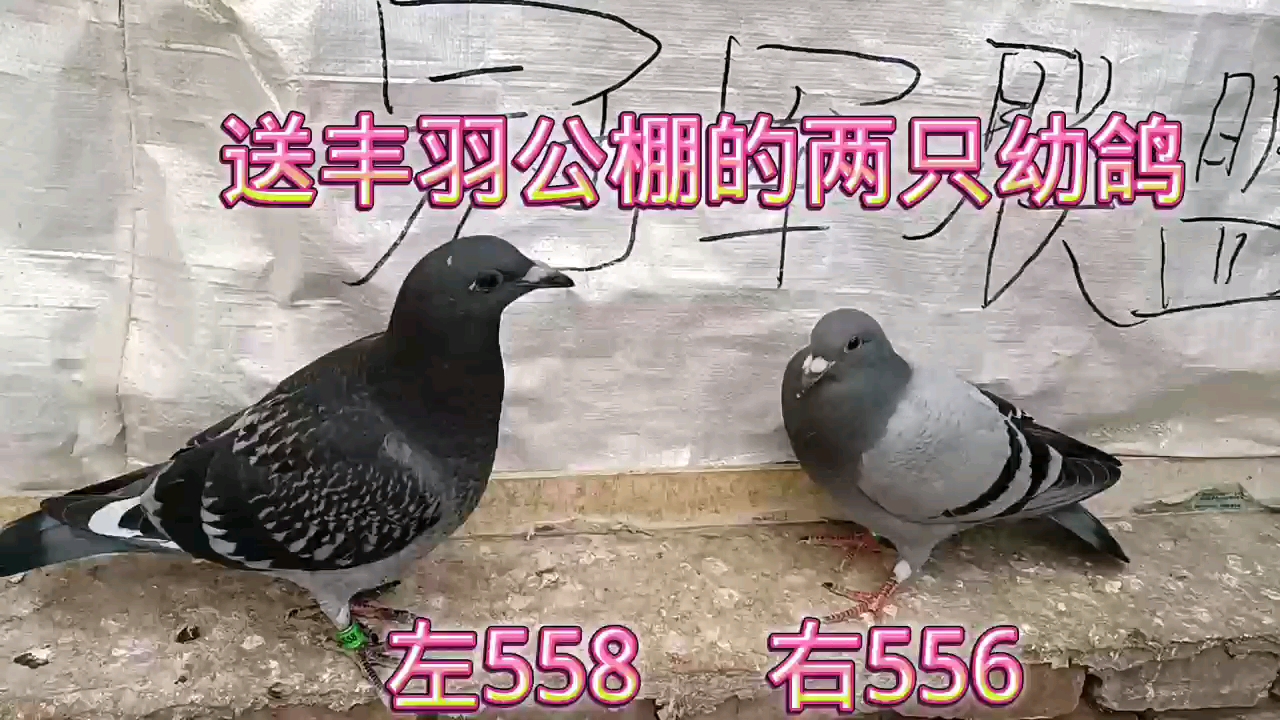 送丰羽公棚的两羽幼鸽,左边是558,右边是556