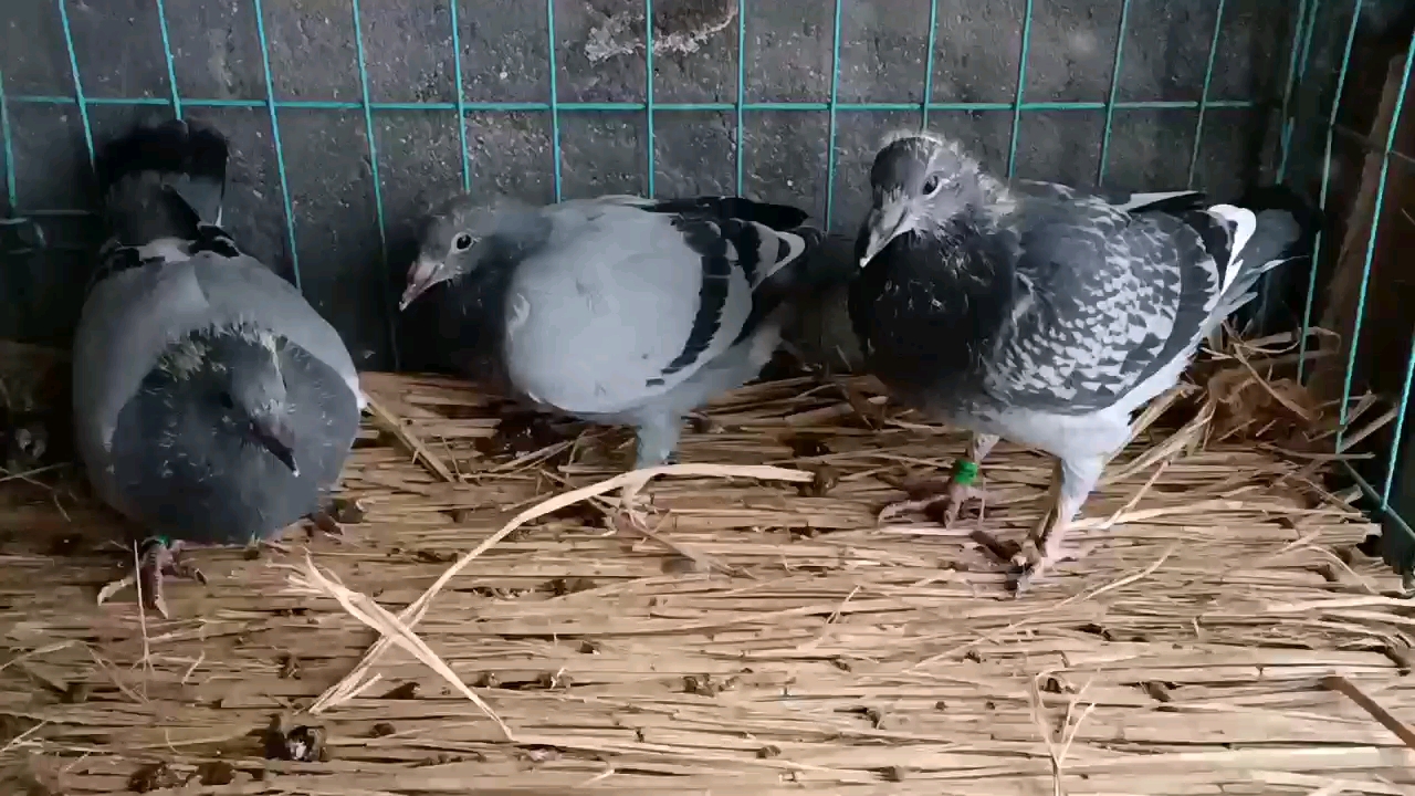 昨天下午,三只幼鸽,都是上月19号出的23天,两个灰色的是合对后四天下的蛋,雨花是合对后三天下的蛋。