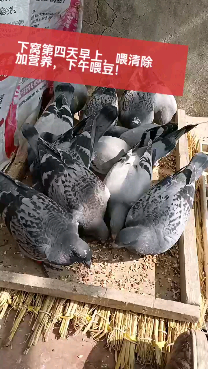 幼鸽下窝第3天,先喂矿石和保健砂,之后喂粮食